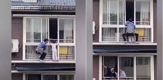 5月21日,四川富順縣一個(gè)5歲女童翻出6樓窗外,居民趕緊在樓下?lián)纹鸨蛔?,路過的小伙胡云川則從5樓陽臺(tái)爬到6樓把孩子塞回屋內(nèi)。