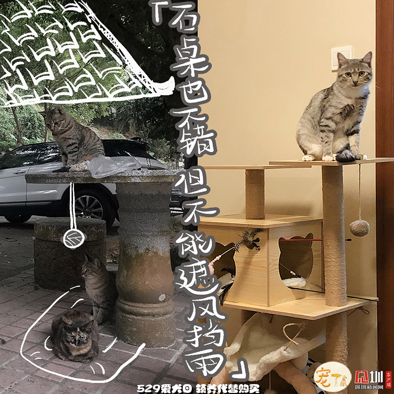 外面的世界再精彩,也比不過一個(gè)能遮風(fēng)擋雨,沒有車流、毒藥威脅,三餐穩(wěn)定、四季如春的容身之處,更何況,這里還有比石桌更有趣的貓爬架和比落葉更好玩的小玩具?,F(xiàn)在“高高在上”“作威作福”的貓咪,也是花光了一生所有運(yùn)氣,才能在無法獨(dú)自生存的小時(shí)候,遇見一個(gè)愿意照顧TA一生的“兩腳獸”。