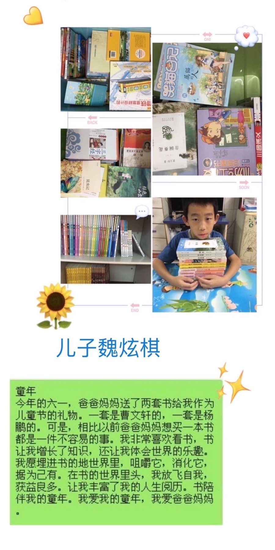 今年的六·一讓人難忘,在我們祖國經(jīng)歷了重大疫情重創(chuàng)后,我們還能擁有如此豐富多彩的六·一活動(dòng),收到超多的美食,還有玩具,每個(gè)人都共同參與節(jié)目表演,老師和同學(xué)們在一起歡歌笑語,收獲終生難忘的記憶。感謝偉大的逆行者們!感恩學(xué)校老師們的精心策劃安排,讓我們過了一個(gè)這么有特色的自主六·一兒童節(jié)!