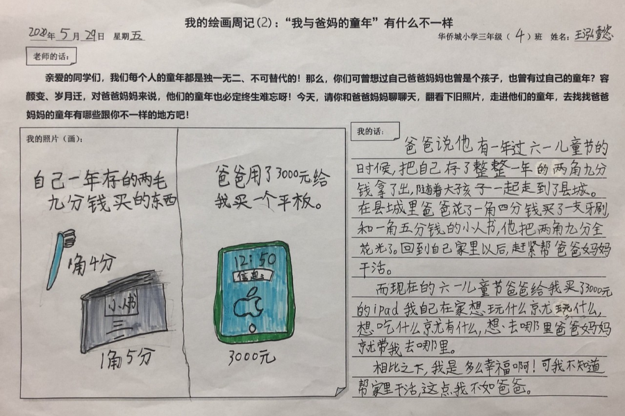 ▲媽媽說:“那會(huì)兒只有過六一兒童節(jié),才可以吃到大白兔奶糖。甜蜜蜜的味道,渴望了許久,吃了糖,糖紙都舍不得扔,還悄悄珍藏起來?!眿寢屵€說:“那時(shí),沒有漂亮的公主裙,只有純白的棉布裙,但還是特別的開心!”雖然我和媽媽在六一得到的禮物不同,但過節(jié)的心情都是激動(dòng)又難忘!