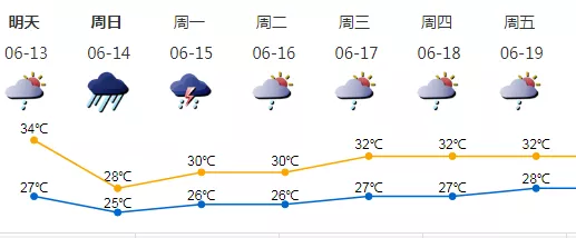 12-13日多云,偶有短時(shí)(雷)陣雨,天氣炎熱;13日夜間-14日有一次明顯風(fēng)雨過(guò)程;