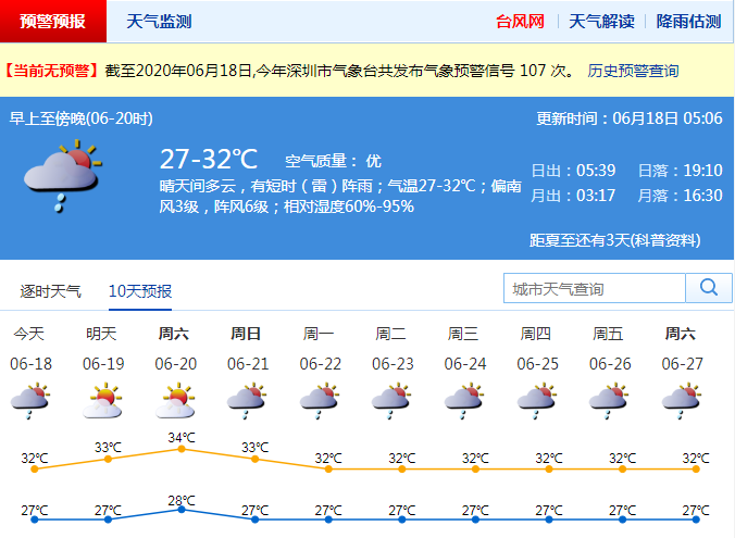 深圳未來3-4天天氣悶熱,午后易出現(xiàn)局地?zé)崂子?