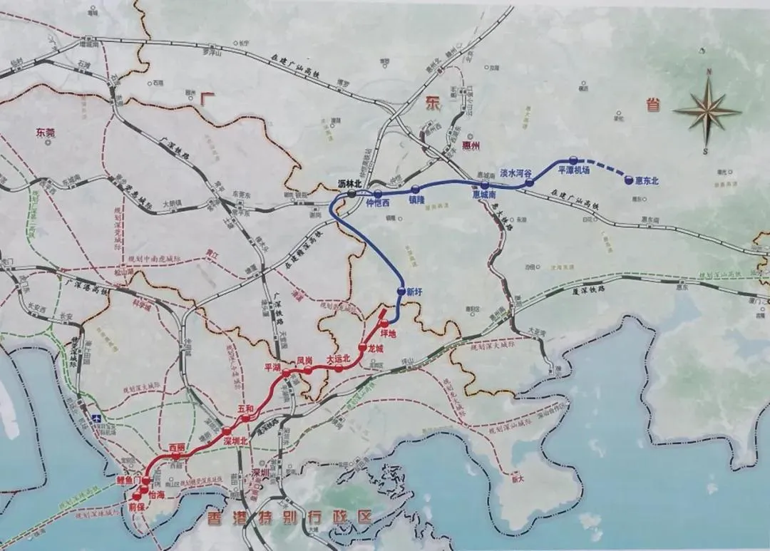 深惠城際:起自前海合作區(qū),經(jīng)西麗、龍華、平湖、大運(yùn)、惠州新圩、瀝林、惠城南站至惠州機(jī)場,全長130公里,計(jì)劃總投資773.1億元。線路在惠州瀝林北站與莞惠城際接軌,利用既有莞惠城際至惠州中心區(qū)。預(yù)留延伸至惠東條件。