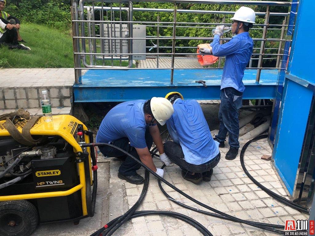 正午烈日下深圳水務(wù)集團(tuán)工作人員正在進(jìn)行作業(yè)。