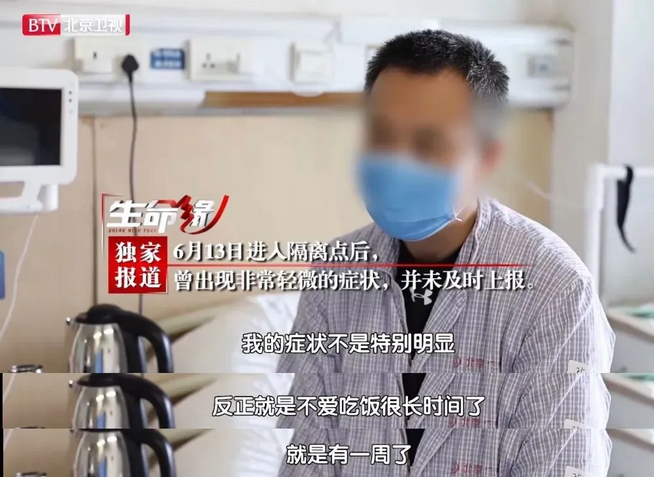 一名新發(fā)地市場(chǎng)保潔員,13日轉(zhuǎn)運(yùn)到集中隔離點(diǎn)進(jìn)行集中醫(yī)學(xué)觀察,20日出現(xiàn)咳嗽等癥狀,未報(bào)告、未服藥,9天后確診。