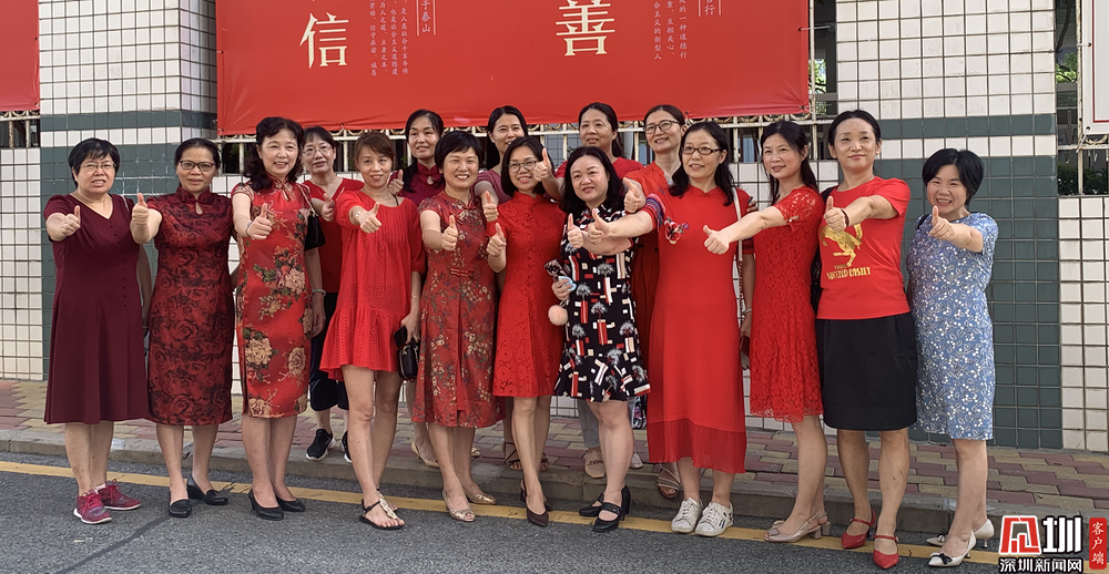 【深圳中學(xué)】身穿紅色旗袍的家長(zhǎng)們預(yù)祝考生們旗開得勝。