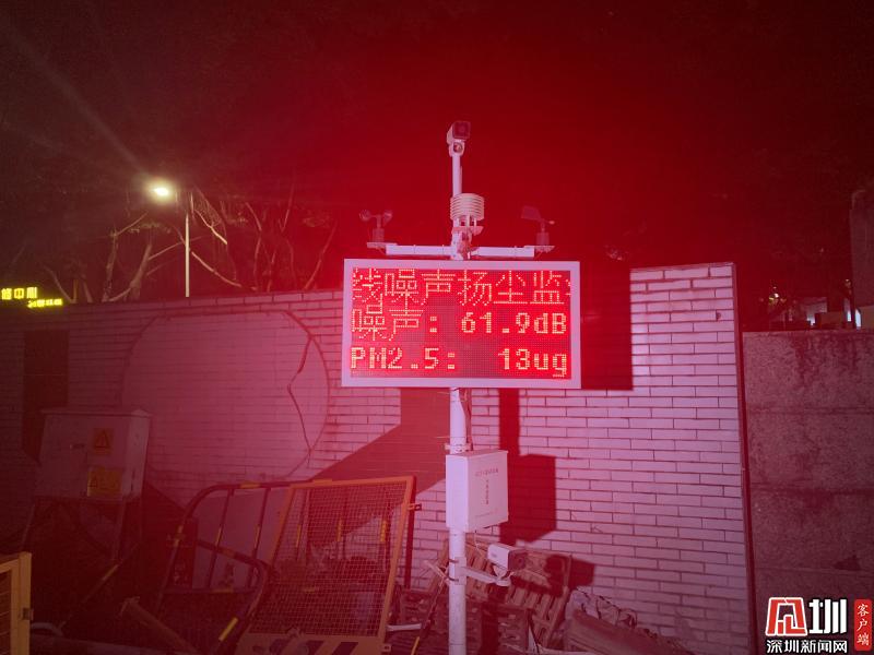 位于梅林中學附近的華強云產(chǎn)業(yè)園和鄰近的中糧金帝、恒利科創(chuàng)共同組成了一個工地集群,由于它們都是靠近住宅區(qū)屬于污染源中的二類區(qū),在噪聲分貝上有明確規(guī)定,白天不超過70分貝,夜間不超過55分貝。記者在現(xiàn)場看到,工地門口樹立著在線噪聲揚塵監(jiān)測系統(tǒng),對工地的噪聲污染和空氣污染進行實時數(shù)據(jù)監(jiān)控。