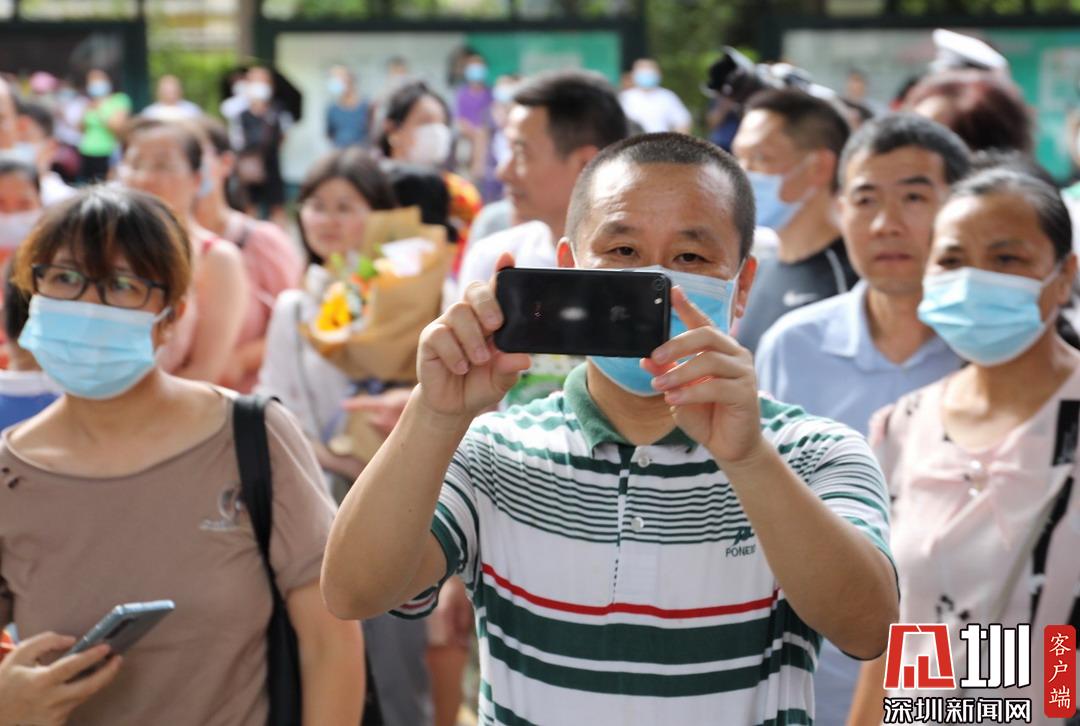 家長舉起手機(jī),靜候于深圳高級中學(xué)考點(diǎn)門口。