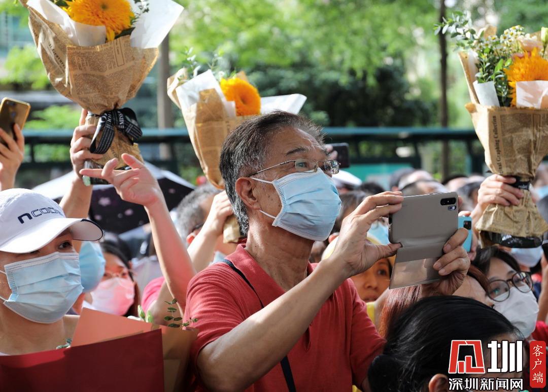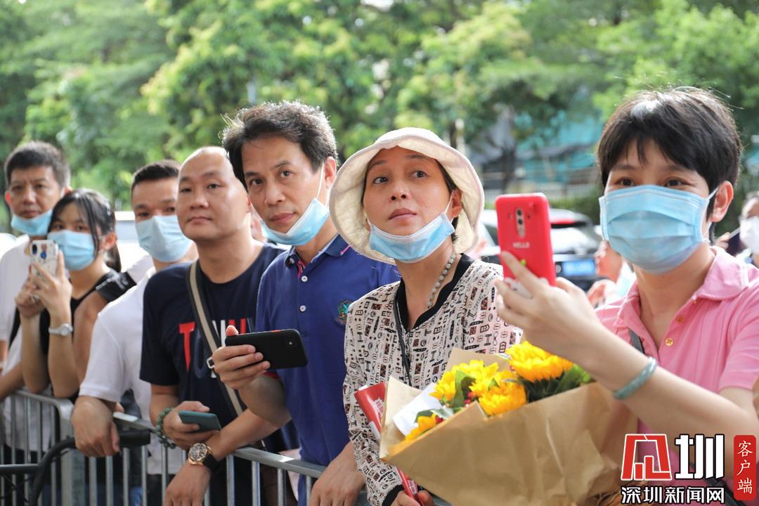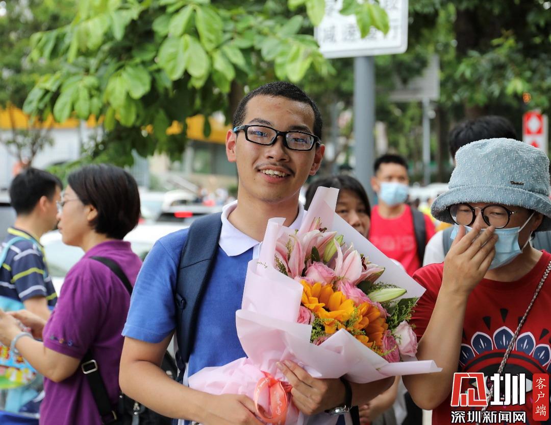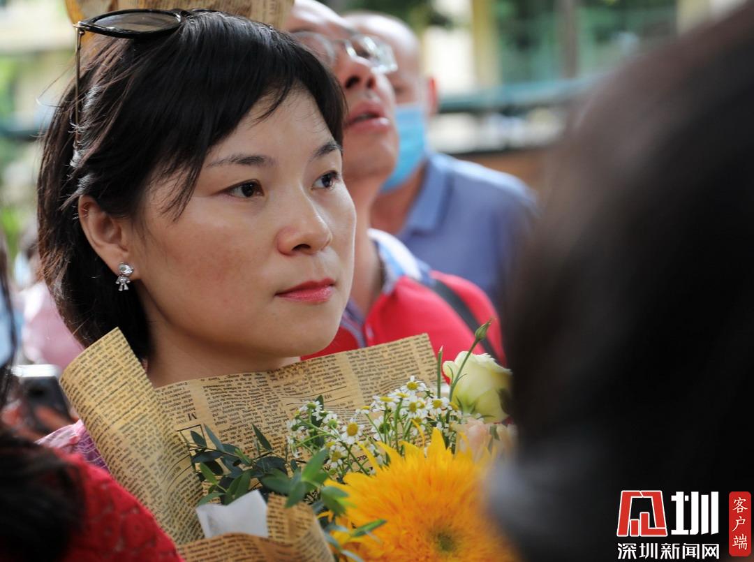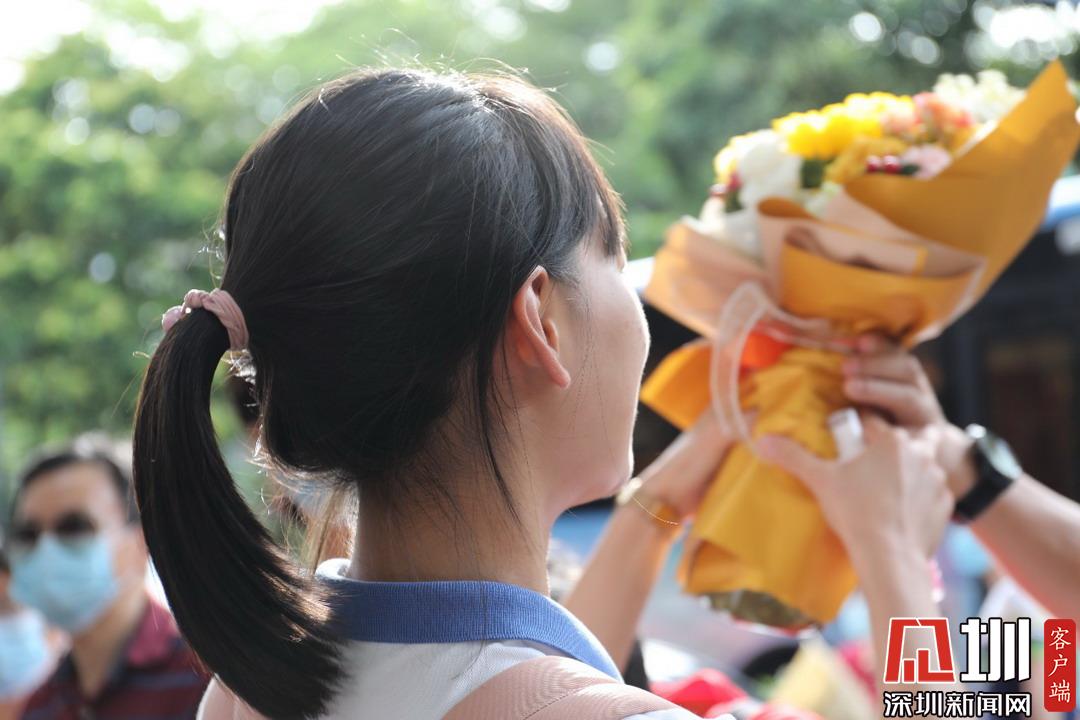 深圳高級中學(xué)考點(diǎn)外家長受捧鮮花、滿懷期待。