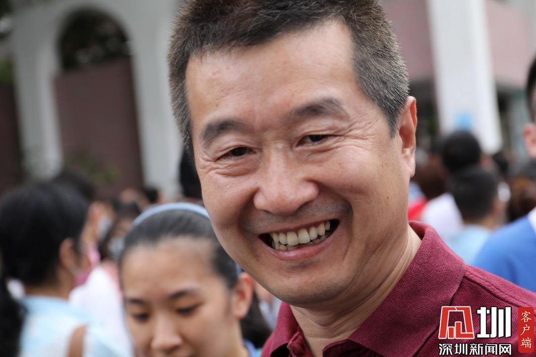 深圳高級中學(xué)考點(diǎn)外家長看見孩子笑臉相迎。
