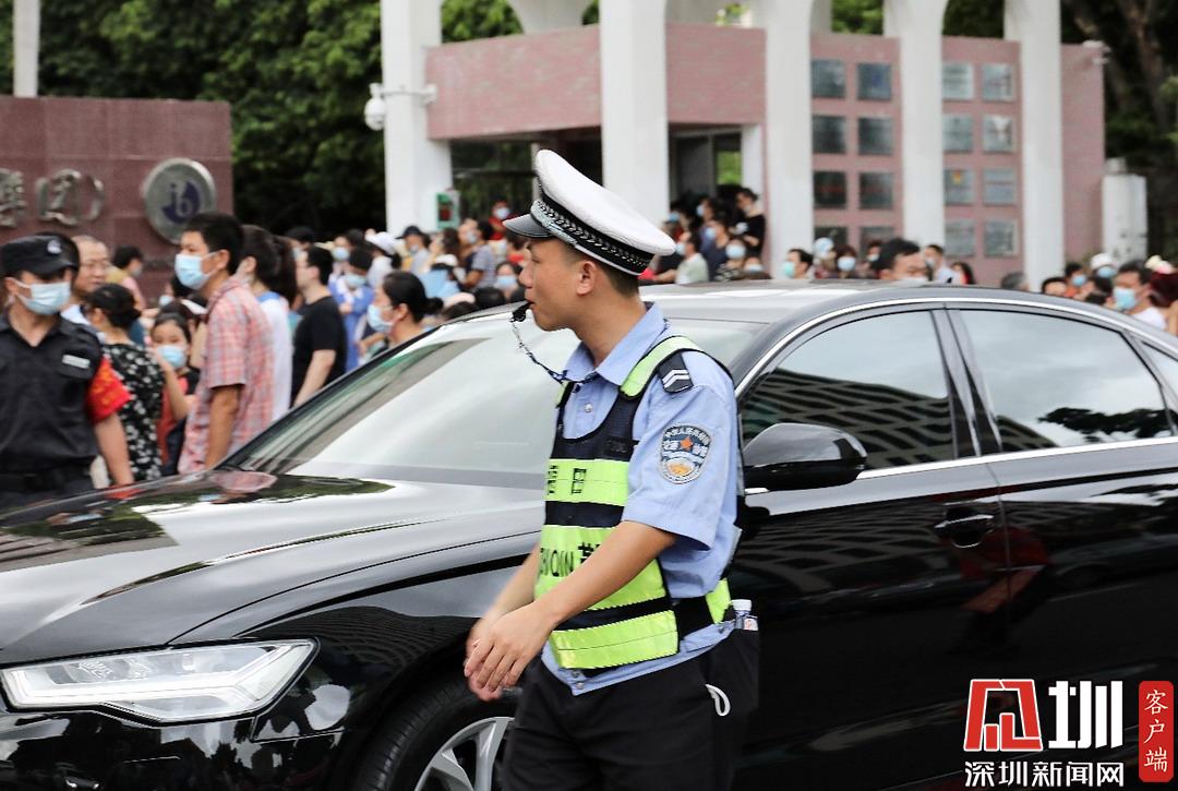 深圳高級中學(xué)考點(diǎn)外,福田交警加強(qiáng)周邊道路巡邏管控。