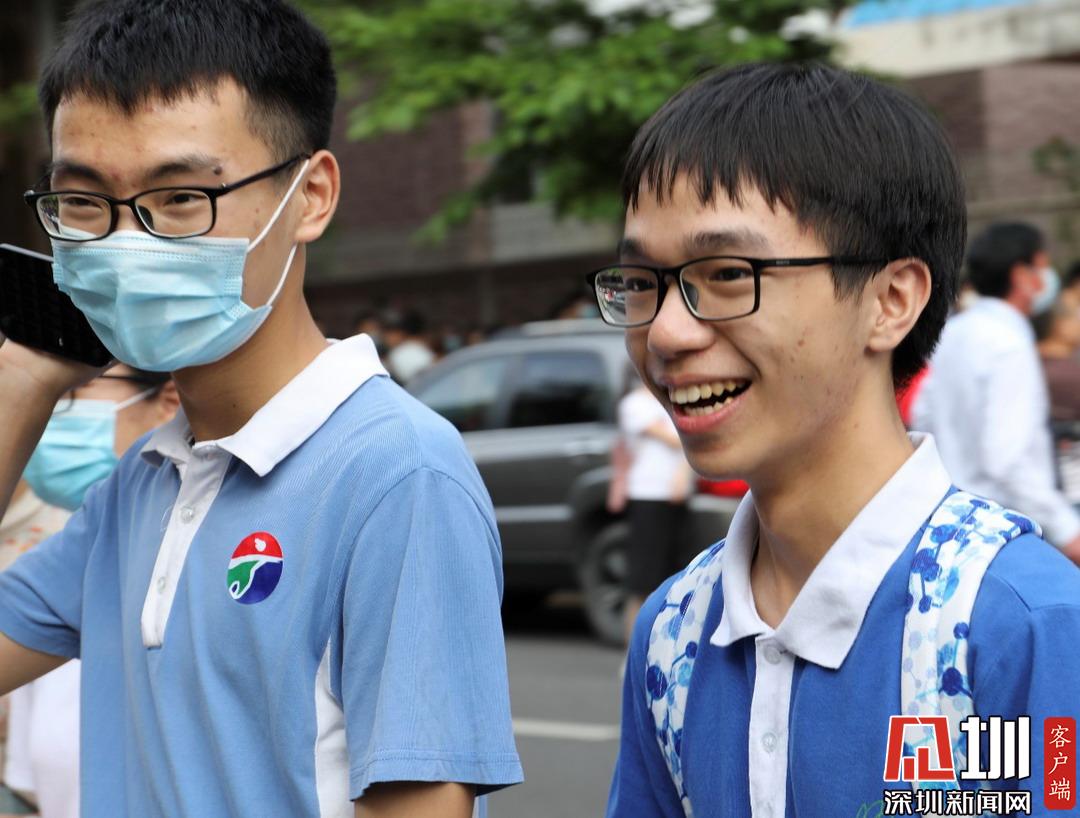 深圳高級中學(xué)考點(diǎn)外考生自信滿滿走出考場。