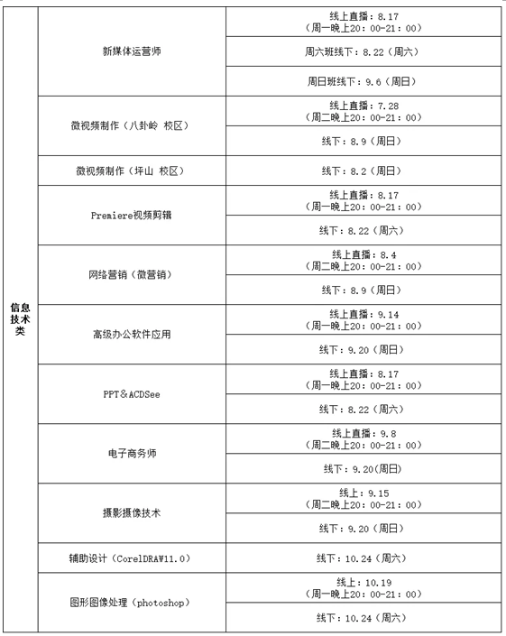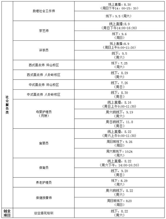 職業(yè)技能培訓(xùn)課程開(kāi)課時(shí)間如下: