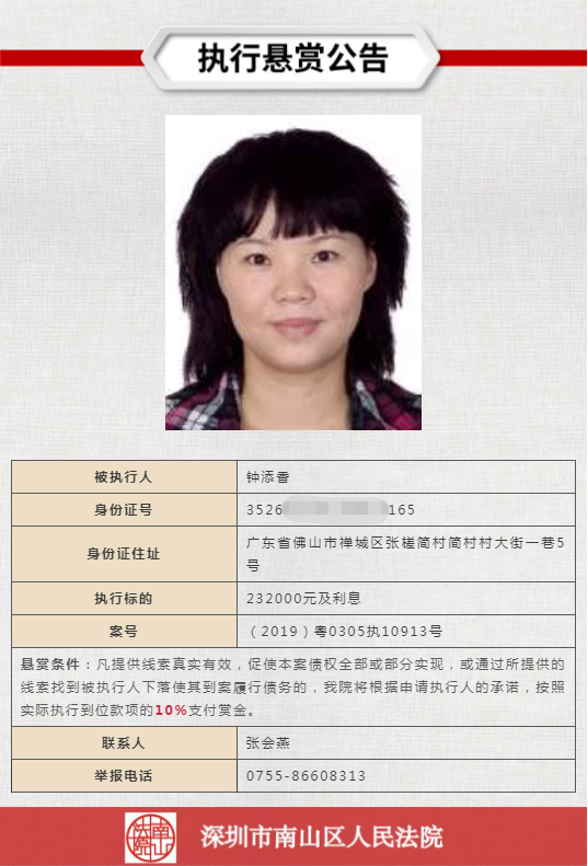 舉報電話詳見執(zhí)行懸賞公告