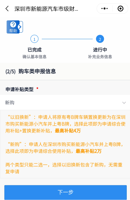 步驟5:購車類申報(bào)信息——選擇申請(qǐng)補(bǔ)貼類型