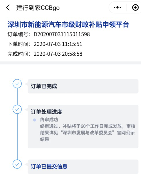客戶可通過i深圳微信公眾號(hào)、深圳市發(fā)展和改革委員會(huì)官方網(wǎng)站或微信公眾號(hào)、深圳交警微信公眾號(hào)或建行到家CCBgo小程序登錄“深圳市新能源汽車市級(jí)財(cái)政補(bǔ)貼申領(lǐng)”平臺(tái)。