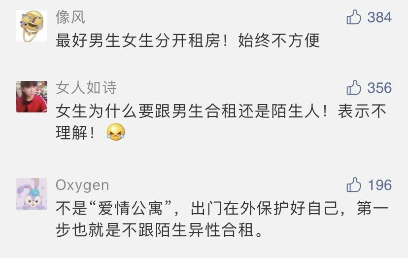 說到合租,請一定要謹慎選擇室友,尤其是男女合租,安全問題不容忽視,凡事多留個心眼,一定要保護好自己。