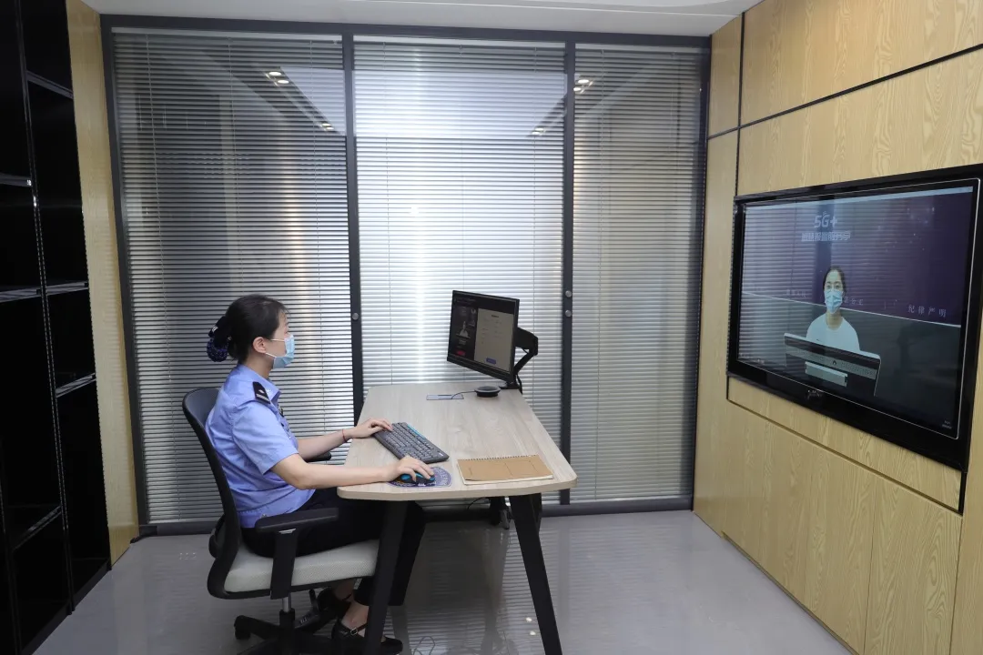 ▲民警通過(guò)5G自助報(bào)警終端向報(bào)警人了解情況