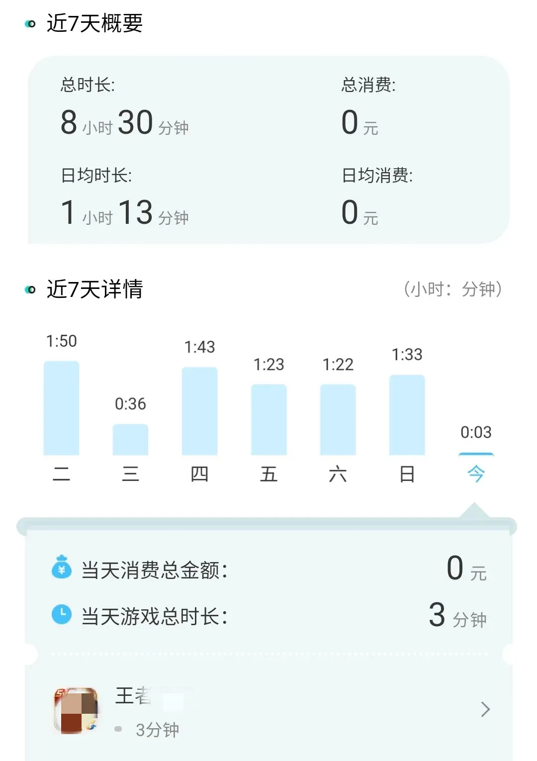 點擊進入詳情頁,甚至還能看到最近7天的統(tǒng)計情況,總共玩多長時間,每天玩多長時間,每次登陸哪款游戲,登錄了多久,什么時候退出游戲……