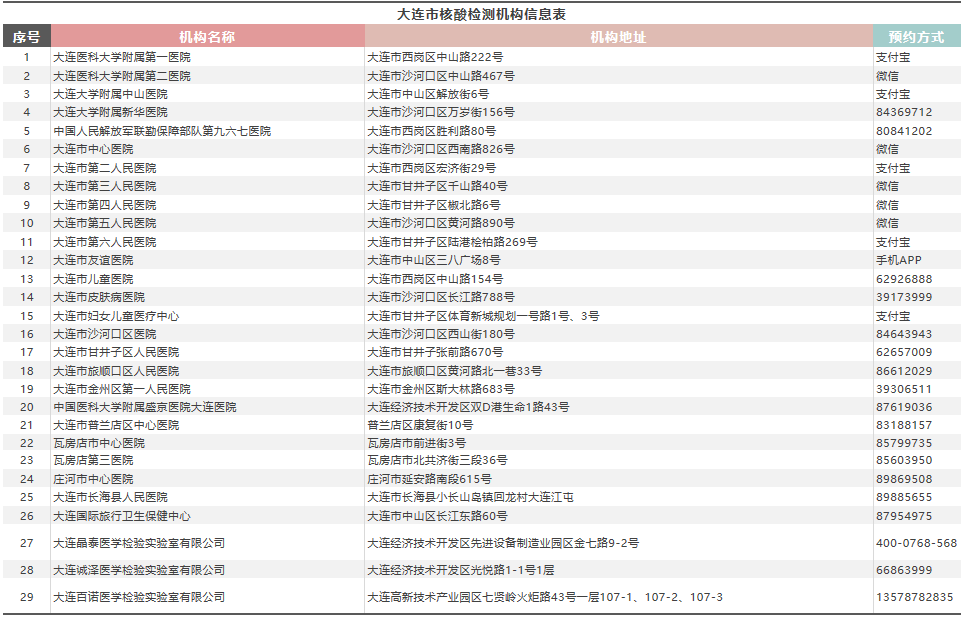 7月24日起,大連市人員原則上實(shí)施非必要不離連,確需離連的,須持7日內(nèi)核酸檢測(cè)陰性證明;冷藏冷凍肉品、海產(chǎn)品企業(yè)或場(chǎng)所從業(yè)人員盡快實(shí)施核酸檢測(cè)。大連市對(duì)外核酸檢測(cè)機(jī)構(gòu)現(xiàn)有29家,機(jī)構(gòu)地址和預(yù)約方式,市民可登錄大連市衛(wèi)生健康委官方網(wǎng)站進(jìn)行查詢(xún)。