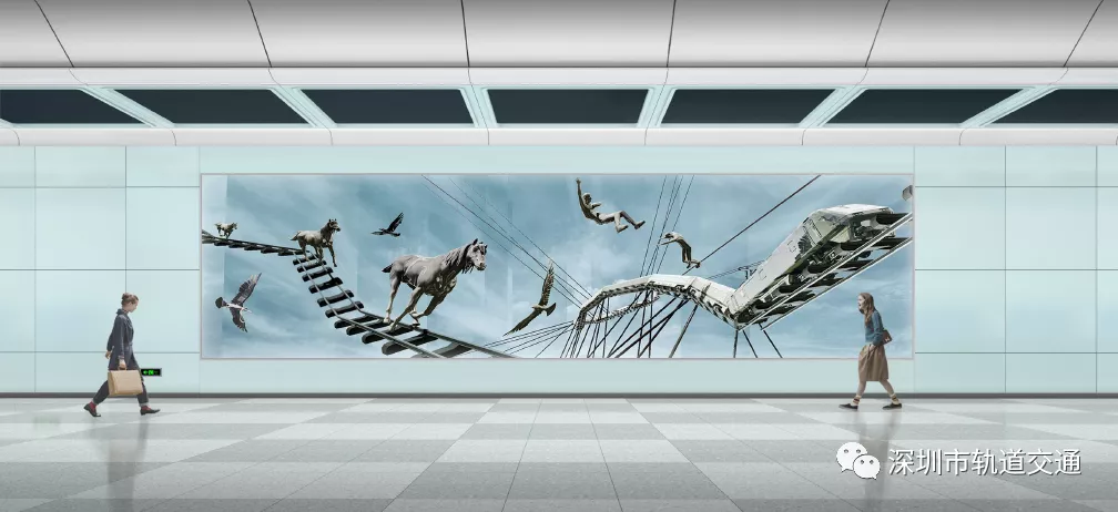 該站文化藝術墻以瓷板為材質(zhì),通過火車軌道、雄鷹、馬等元素結合,呈現(xiàn)出現(xiàn)代城市的多種元素,將城市、生態(tài)和科技的完美結合。