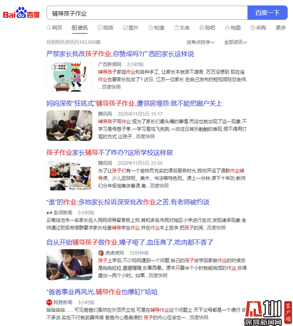 中國青少年研究中心家庭教育首席專家孫云曉介紹,全國婦聯(lián)的一項(xiàng)調(diào)查顯示,40%以上的家長覺得無力輔導(dǎo)孩子作業(yè)。家長們對此有多愁苦?百度搜索“輔導(dǎo)孩子作業(yè)”的資訊,彈出16.2萬篇文章,大部分是關(guān)于家長各種吐槽?!蹲鳂I(yè)把孩子難哭了,輔導(dǎo)作業(yè)把媽媽氣哭了,網(wǎng)友:太真實(shí)了》、《“爸爸事業(yè)再風(fēng)光,輔導(dǎo)作業(yè)也爆缸!”》、《自從開始輔導(dǎo)孩子做作業(yè),嗓子啞了,血壓高了,吃肉都不香了》……一篇篇文章的標(biāo)題,都是關(guān)于各位家長輔導(dǎo)孩子時(shí)的滿肚子苦水。