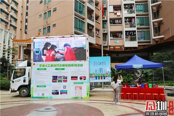 在漁民村文化廣場,垃圾分類宣傳車上的LED屏幕播放著垃圾分類減量宣傳視頻,供社區(qū)居民觀看學(xué)習(xí),據(jù)悉,這是全市首輛垃圾分類宣傳大篷車。而此輛垃圾分類宣傳車從漁民村發(fā)車也有著重要意義,上世紀70年代,漁民村趁著改革開放的春風(fēng),發(fā)掘地域的優(yōu)勢,做出了改革的第一步嘗試,經(jīng)過四十多年的發(fā)展,漁民村不僅夯實了物質(zhì)基礎(chǔ),更是在精神文明層面上有了長足的發(fā)展,如今漁民村也成立了自己的志愿服務(wù)組織—深圳市羅湖區(qū)民樂志愿者協(xié)會。