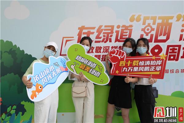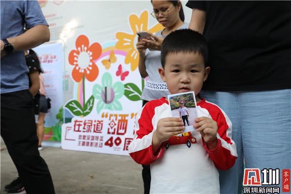 “我是在‘i羅湖’公眾號(hào)上看到消息,說(shuō)是周日梧桐綠道會(huì)舉辦攝影活動(dòng),于是帶著家人來(lái)游玩拍照”。羅湖市民周先生說(shuō)。這里有深圳和綠道元素的標(biāo)語(yǔ)、頭箍、合影異形牌等道具,拍照打卡很有紀(jì)念意義,而且還有專(zhuān)業(yè)的攝影師和智能照片打印機(jī)?!拔覀円患胰撕芫脹](méi)有合影了”拿著剛打印出來(lái)的照片,周先生看著家人笑得很開(kāi)心。