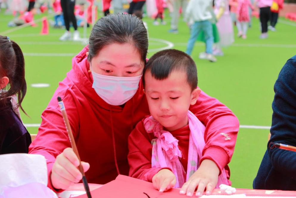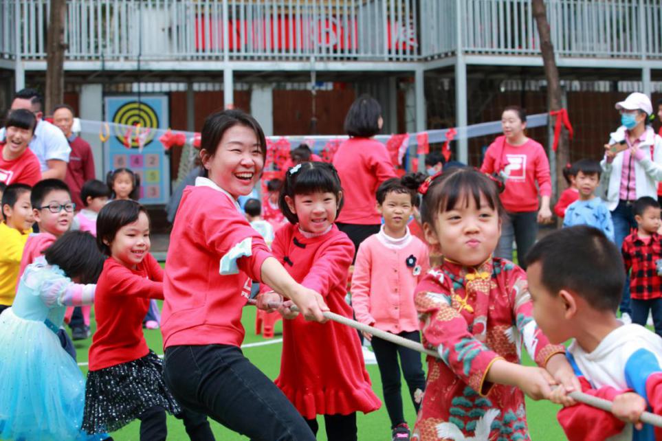 “加油!加油!”家長與孩子一起參加的拔河比賽讓全場氣氛沸騰,套圈、貼鼻子等活動,更是讓大人們體驗(yàn)了一把兒時的歡樂。孩子們身系紅紅的綢帶、揮舞著漂亮的手絹,伴隨鑼鼓、嗩吶、镲奏出的動感曲調(diào)扭著秧歌,更是將現(xiàn)場氛圍推向了高潮。