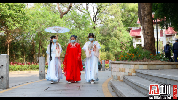 風景如畫的東湖公園吸引來了不少漢服愛好者,她們身著霓裳羽衣,手撐紙傘,步履輕盈,五彩繽紛的服飾與滿園的春色相映生輝,一幅春天最美的畫卷就這樣在眼前展開。穿漢服的小姐姐們告訴記者,她們是專程從龍華過來的,因為很喜歡漢服又正值踏青賞花好風光,特地與好友來東湖公園一起記錄春天的精彩瞬間。