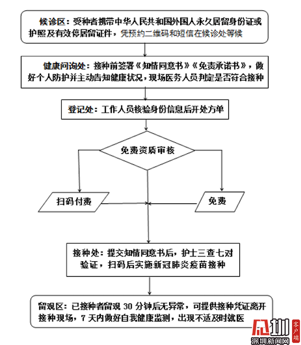 按照“知情同意、自愿自費(fèi)、便利接種、風(fēng)險(xiǎn)自擔(dān)”原則,持有內(nèi)地公安部門制發(fā)的港澳居民居住證或內(nèi)地醫(yī)保參保憑證的港澳人士、在省內(nèi)各類學(xué)校工作和學(xué)習(xí)的港澳籍師生以及參加廣東省社會保障醫(yī)療保險(xiǎn)的外籍人士,均可免費(fèi)接種新冠疫苗;不符合以上免費(fèi)接種條件的港澳同胞、外籍人士自愿參與疫苗接種,將按照100元/劑次收取費(fèi)用。目前,深圳使用的是國產(chǎn)新冠病毒滅活疫苗,全程共需接種兩劑。