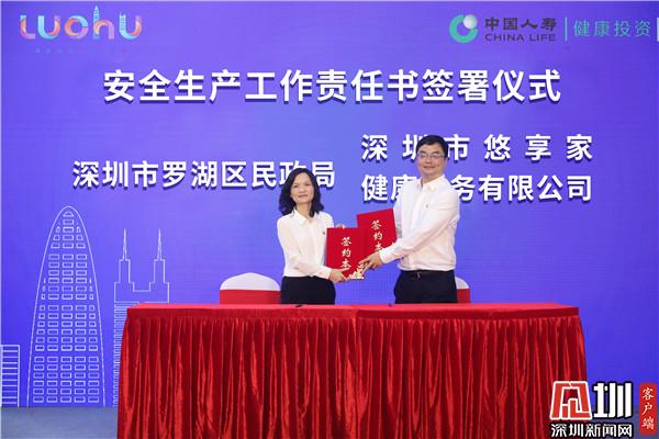 在開業(yè)儀式上,羅湖區(qū)民政局與國壽·悠享家健康護老中心簽訂了安全生產(chǎn)、消防工作責(zé)任書,為保障入住長者安全、關(guān)注長者需求層層壓實安全責(zé)任。