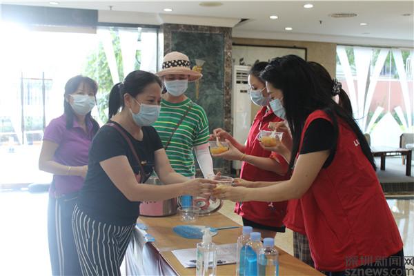 看著社區(qū)工作人員和義工喝著自己親手熬制的糖水,蔡?hào)|風(fēng)一行三人很開心,之前她們也曾帶領(lǐng)社區(qū)居民在小區(qū)出入口值守,現(xiàn)在又來以這種特殊的方式支持抗疫,“大家都在為抗疫忙碌,我們必須做點(diǎn)什么才安心。”蔡?hào)|風(fēng)說。老圍社區(qū)黨委書記許少瓊對(duì)社區(qū)居民的所作所為深為感動(dòng),她說,“抗擊疫情離不開大家的支持和幫助。我們一起加油!”