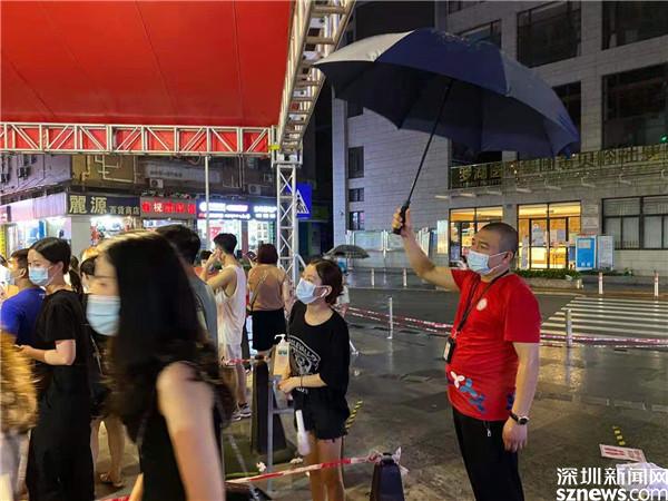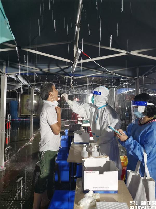 讀特客戶(hù)端·深圳新聞網(wǎng)2021年6月21日訊(記者 李慧)6月21日晚及6月22日一早,深圳雷雨交加,深圳市氣象臺(tái)2021年06月22日07時(shí)10分在多個(gè)區(qū)域發(fā)布暴雨紅色預(yù)警,羅湖也包括其中。有那么一群人,嚴(yán)陣以待、逆雨迎風(fēng),堅(jiān)守在抗疫一線(xiàn)。記者到各核酸檢測(cè)點(diǎn)看到,醫(yī)護(hù)人員和社區(qū)義工們?nèi)匀幻爸L(fēng)雨,堅(jiān)守在核酸采集的崗位上。