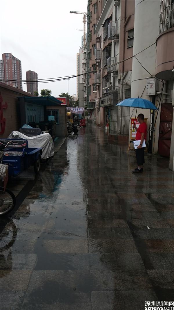 一把傘,一本臺(tái)賬,暴雨中“紅馬甲”仍然在各個(gè)小區(qū)出入口值守。
