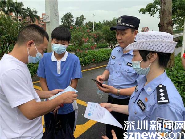 6月26日中考第一天,上午7:43,羅湖大隊接到求助,一名考生搭乘公交車前往文錦中學(xué)考場的途中,遺失身份證。中考在即,刻不容緩。羅湖交警一方面聯(lián)系屬地派出所,幫忙補辦身份證,一方面協(xié)調(diào)巴士集團,檢查考生搭乘的83路公交車,是否能發(fā)現(xiàn)其身份證,同時聯(lián)系從家里送戶口本的家長,鎖定其搭乘的的士車,為送證保駕護航。經(jīng)過一番努力,家長送來戶口本、學(xué)校送來學(xué)生證明、羅湖分局送來補辦好的身份證明,考生準時入場考試??粗⒆禹樌M入考場,考生的父親激動地握著交警的手,連連道謝。