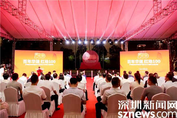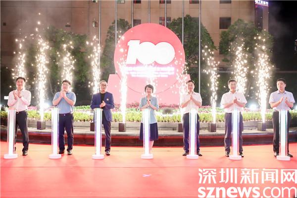 隨著參會(huì)領(lǐng)導(dǎo)和嘉賓按下儀式啟動(dòng)鍵,羅湖地標(biāo)建筑京基100被“點(diǎn)亮”,滾動(dòng)顯示“百年華誕 紅動(dòng)一百”、“崢嶸歲月 百年風(fēng)華”祝福語,噴泉廣場(chǎng)亮如白晝,映入觀眾眼中,現(xiàn)場(chǎng)發(fā)出陣陣贊嘆聲,將慶祝的氛圍推向高潮。