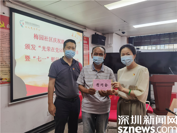 讀特客戶端·深圳新聞網(wǎng)2021年6月30日訊(記者 郭含笑 通訊員 陳秋珊 紀楚苗)為進一步加強和體現(xiàn)黨組織對黨員的關(guān)心與愛護,在中國共產(chǎn)黨百年華誕來臨之際,6月30日下午,深圳市羅湖區(qū)清水河街道梅園社區(qū)黨委在黨群服務(wù)中心二樓會議室舉行慶祝建黨百年頒發(fā)“光榮在黨50年”紀念章暨“七一”慰問主題黨日活動。