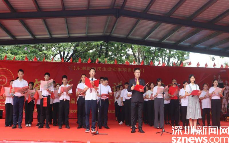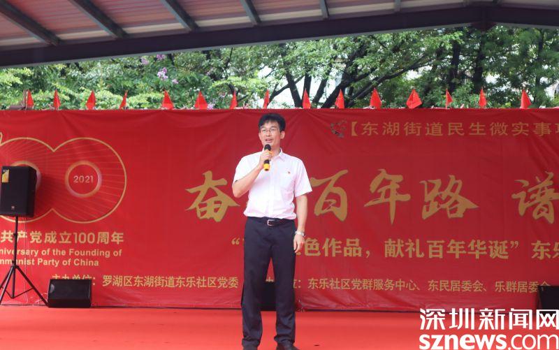 讀特客戶端·深圳新聞網(wǎng)2021年7月30日訊(見習(xí)記者 邱婕 通訊員 黃小花)百年征程波瀾壯闊、百年初心歷久彌堅(jiān)、百年成就催人奮進(jìn)、百年歌聲唱響今天。7月30日上午,“百幅紅色作品,獻(xiàn)禮百年華誕”東樂社區(qū)建黨100周年慶?;顒?dòng)在東樂花園文化廣場舉行。東湖街道黨工委副書記、辦事處主任劉慧堅(jiān),黨工委副書記、人大工委主任謝統(tǒng)敏,東湖街道二級(jí)調(diào)研員、東樂社區(qū)第一書記曾列文,東湖街道辦事處副主任李民,羅湖區(qū)退役軍人事務(wù)局副局長何朝陽,東樂社區(qū)黨委書記劉芳,東樂社區(qū)社工與義工及廣大居民朋友400余人參與此次活動(dòng)。