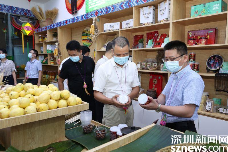 讀特客戶端·深圳新聞網(wǎng)2021年8月18日訊(記者 劉晨 通訊員 蔡曉檸)8月18日下午,羅湖區(qū)黃貝街道隆林西林鄉(xiāng)村振興農(nóng)產(chǎn)品體驗(yàn)店正式揭牌開業(yè),這也是全市首家鄉(xiāng)村振興農(nóng)產(chǎn)品體驗(yàn)店,該體驗(yàn)店是羅湖區(qū)黃貝街道黨工委在羅湖區(qū)對口幫扶領(lǐng)導(dǎo)小組指導(dǎo)下,實(shí)施精準(zhǔn)消費(fèi)扶貧、深化鞏固扶貧攻堅(jiān)成果的創(chuàng)新實(shí)踐,全力助推鄉(xiāng)村振興戰(zhàn)略。羅湖區(qū)副區(qū)長肖嘉睿出席了開業(yè)儀式,與黃貝街道黨政主要領(lǐng)導(dǎo)、黃貝嶺靖軒股份公司負(fù)責(zé)人等共同為農(nóng)產(chǎn)品體驗(yàn)店揭牌。
