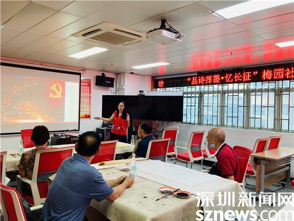 讀特客戶端·深圳新聞網(wǎng)2021年9月9日訊(記者 郭含笑 通訊員 梁嘉麗/文 張亮亮/圖)今年是中國共產(chǎn)黨成立100周年,在第二十二屆深圳讀書月來臨之際,9月9日下午,深圳市羅湖區(qū)清水河街道梅園社區(qū)黨委聯(lián)合梅園社區(qū)婦聯(lián)、梅園社區(qū)長青老齡大學(xué)、深圳市東西方社工服務(wù)社駐梅園社區(qū)黨群服務(wù)中心社工,在紅崗大廈二樓多功能室開展“品詩揮墨?憶長征”讀書月活動(dòng)。
