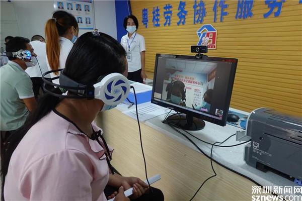 在粵桂勞務(wù)協(xié)作服務(wù)中心,一場兩地遠(yuǎn)程視頻招聘會(huì)正在舉行,不少百姓拿著心儀的崗位介紹在等候面試。服務(wù)中心前臺(tái)放置著四臺(tái)電腦,參加面試的人坐在電腦前連接視頻,視頻的另一端,是來自羅湖區(qū)的企業(yè)。這樣的視頻招聘會(huì),定期在服務(wù)中心舉行。
