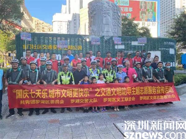 據了解,這是羅湖交警大隊聯合東門街道辦事處、羅湖團區(qū)委、區(qū)文體志愿者協(xié)會、區(qū)曲藝家協(xié)會、深圳市曉安科技有限公司、深圳市廣運和汽車租賃有限公司、樸樸超市企業(yè)依托東門交通安全主題公園組織開展的“一盔一帶/拒絕酒駕”主題交通安全宣傳活動,旨在為群眾辦實事辦好事,確保群眾國慶期間出行安全,提升各類群體交通安全意識。