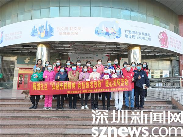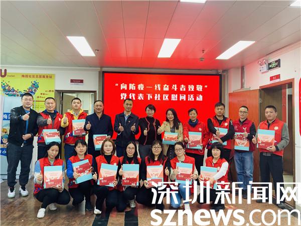 活動(dòng)開始前,羅湖區(qū)黨代表、清水河街道黨工委副書記、辦事處主任宮雪,深圳市羅湖區(qū)黨代表童根生一行到梅園社區(qū)黨群服務(wù)中心慰問(wèn)了梅園社區(qū)全體一線工作人員,為大家送上貼心防疫關(guān)愛包和暖心慰問(wèn)信。