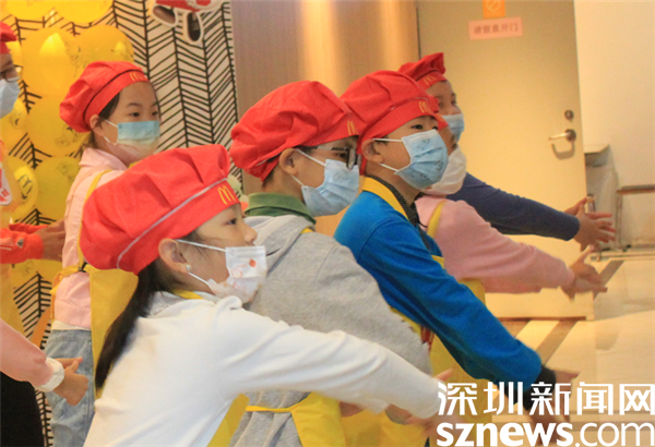 12月11日,是今年的第五次職業(yè)體驗(yàn)活動。12名社區(qū)小朋友在社工的帶領(lǐng)下,與中信銀行金山大廈支行的工作人員一起來到麥當(dāng)勞,進(jìn)行迎客、大廳服務(wù)、美食分享等小小營業(yè)員體驗(yàn)。12名小朋友穿上麥當(dāng)勞的圍裙,戴上麥當(dāng)勞的帽子,分站大門兩側(cè),迎送來往的客人:“歡迎光臨!”“喜歡您再來!”小朋友們在工作人員的指導(dǎo)下,露出笑容,朗朗地迎接或者送客。然后,他們拿起抹布,擦拭桌子,將客人留下的紙杯、包裝紙、吸管等垃圾分門別類地放進(jìn)垃圾桶,小朋友做起這個來最興奮,客人一離開,桌子很快就被整理干凈。為客人送上雪糕的過程,對于一些害羞的小朋友也是一個不小的挑戰(zhàn)。在社工的鼓勵和陪伴下,他們大膽地走到客人面前,雙手送上雪糕。當(dāng)客人表示感謝的時候,害羞的小朋友笑了。