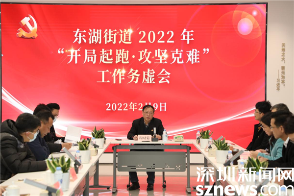 讀特客戶端·深圳新聞網(wǎng)2月10日訊(記者 謝秋平 通訊員 魏官明 陳惠冰)開局就要爭(zhēng)先,起跑就是沖刺。2022年2月9日,羅湖區(qū)東湖街道召開2022年“開局起跑·攻堅(jiān)克難”工作務(wù)虛會(huì),再次傳達(dá)學(xué)習(xí)羅湖區(qū)2022年“開局起跑·攻堅(jiān)克難”干部大會(huì)會(huì)議精神,認(rèn)真統(tǒng)籌謀劃2022年街道攻堅(jiān)克難任務(wù),統(tǒng)一思想、凝聚合力,苦干實(shí)干、創(chuàng)新躍進(jìn),全面吹響高質(zhì)量發(fā)展的進(jìn)軍號(hào),邁出奮力建設(shè)“幸福街區(qū)、生態(tài)東湖”的堅(jiān)實(shí)步伐。會(huì)議由東湖街道黨工委書記程時(shí)菊主持,街道全體處級(jí)領(lǐng)導(dǎo),各辦(中心)正科實(shí)職干部、各社區(qū)黨委書記參加了會(huì)議。