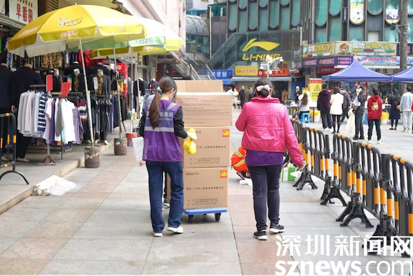 據(jù)悉,在市、區(qū)指揮部領導下,東門街道成立了專項疫情防控指揮部,設置11個工作組。全街道共設置了8個臨時核酸檢測點和2個防控區(qū)內(nèi)人員核酸檢測點,開展全員核酸檢測工作。在核酸檢測點,檢測通道分為綠碼與黃碼通道,現(xiàn)場工作有序開展,居民自覺遵守規(guī)定,間隔一米排隊。羅湖醫(yī)院集團工作人員,正在運送補給物資。