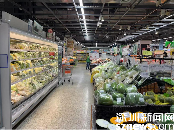 最后,記者走訪了周邊超市,看到蔬菜瓜果一應俱全,供應充足。