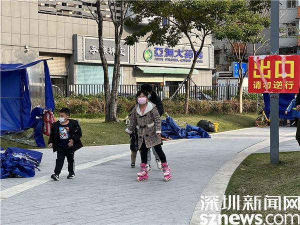 不少孩子還在社區(qū)公園里玩耍,來(lái)不及脫下輪滑鞋,就先去做了核酸檢測(cè)。