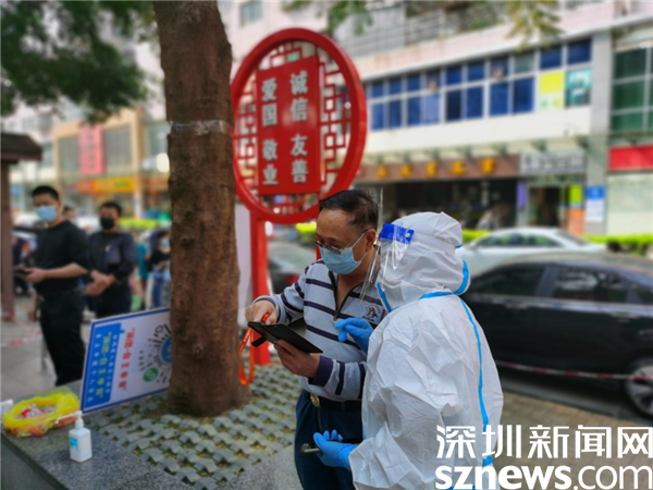 為做好核酸檢測應檢盡檢、愿檢盡檢、不漏一戶、不漏一人。3月5日—6日周末期間,仙湖社區(qū)各核酸檢測點提前就位,各項檢測工作正常進行?!罢垇頇z測核酸的居民朋友,打開微信掃一掃場所碼,打卡成功后,切換粵核酸二維碼給工作人員掃碼。接種新冠疫苗48小時之內不能檢測核酸,謝謝配合?!痹诨ヂ?lián)網(wǎng)產(chǎn)業(yè)園區(qū)的核酸點位,仙湖社區(qū)黨群服務中心主任劉紅艷腰間圍上裝有試管的袋子,邊掃碼邊宣傳,忙的不亦樂乎。她說:“圍著袋子是為了提高掃碼效率,我們每天檢測7000多人,上千遍都重復同樣的話,一個字都不會錯。居民們都很親切的叫我們‘愛碼士’小分隊,我們也很喜歡這樣的‘愛稱’”。